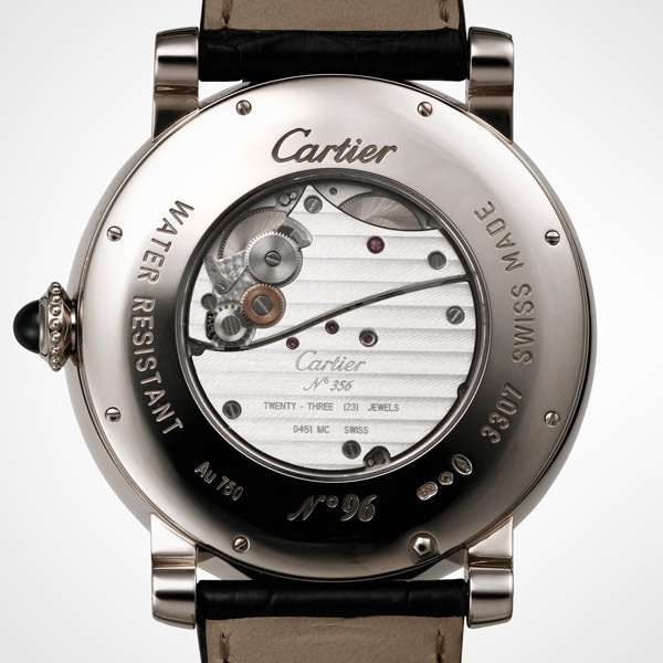 錶款搭載的9451 MC機芯是以卡地亞既有的型號為基礎,從透明底蓋下只看得到二枚夾板,板路也都是優雅的曲線,是近年最漂亮的板路之一。