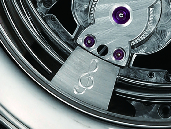 從後底蓋可以看到教堂樂音的音簧比起傳統三問所繞的圈數還要多,因此音錘敲擊出的音色會更為出色,音質悠遠,餘韻綿長不絕。