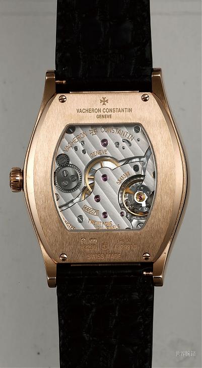 這款小三針在2012年初出時是全系列的定番,因為往上就是陀飛輪,往下則是石英款,相形之下這款機械小三針應該是大多數都會優先入手的選擇。錶款搭載4400機芯,包括另一款兩針的鉑金限定版在內,兩款裝了4400機芯的款式在2012年都沒採用透明底蓋,直到'14年才將小三針款改成看得到機芯的樣式。對於像江詩丹頓這種每只錶都有取得日內瓦印記的品牌來說,不做透明底蓋實在是一件很可惜又很稀奇的事,而當初他們之所以一度選擇將底蓋封起來,主要的理由應該還是考量到錶殼是酒桶形的,但機芯卻是圓形的。事實上酒桶殼裝圓形機芯無可厚非,畢竟酒桶形的機芯直如鳳毛麟角,強求不來,不過當時江詩丹頓還是選擇了慎重其事,寧可不露也不要讓機芯和錶殼間稍有齟齬。