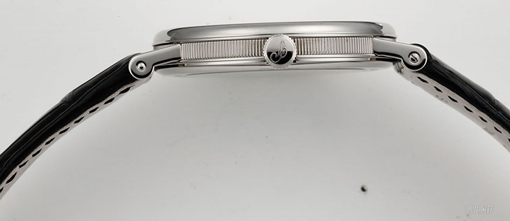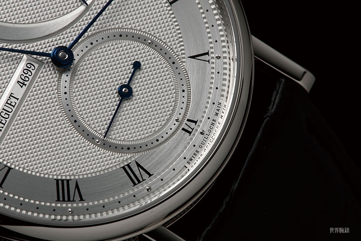面盤整片都是巴黎釘紋,小秒盤刻度的內外並沒有另外採用不同樣式的刻紋。寶璣的面盤自然是以手工機刻的,不過這款還特別標示了"SWISS GUILLOCHEMAIN",這不是每款都有的。