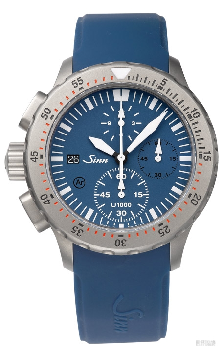 U1000最早在2008年推出,基本上就是SINN的潛水錶產品線U系列的計時碼錶款。機芯是以ETA 7750為基礎,不過由於錶款採用了左冠設計,因此子面盤的左三眼變成了右三眼;然而這枚機芯也不是純粹的7750,SINN自行對入荷的機芯進行了修改,計時分鐘由30分改成了60分,更符合目前一般人的閱讀習慣。