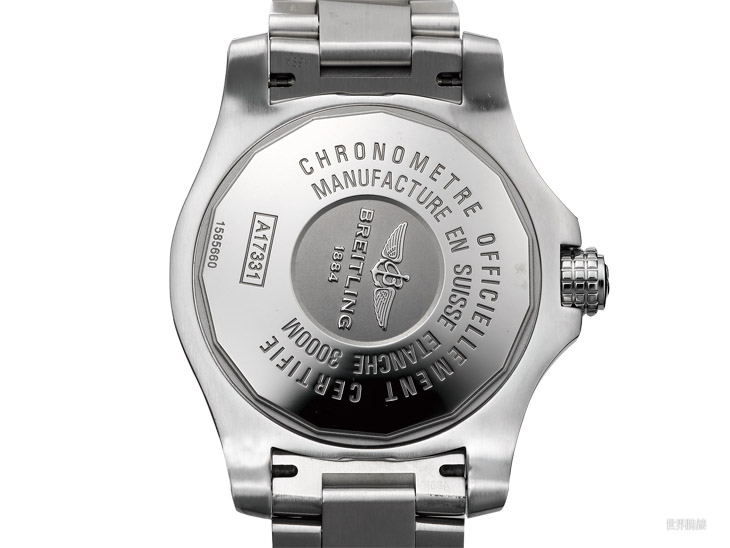 錶背採用旋入式實底蓋,百年靈即使是自製機芯款也很少採用透明底蓋,這款式深潛款自然更得如此。搭載17機芯,相當於ETA 2824,並取得天文台認證。