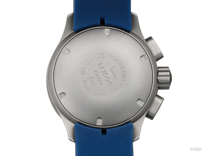 EZM SINN的錶背以實底蓋為主,這款防水1,000米的自然也不會做透明底蓋。U1000同樣屬於SINN的任務用錶系列(Einsatzzeitmesser,EZM),因此底蓋上也刻有它的EZM編號。