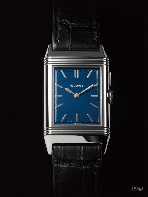 藍色面盤那濃蘊的色彩,彷彿視覺炸藥般炸裂你的想像,然而不變的軌道式分鐘刻度、劍型指針,以及半劍型小時刻度,都在隱隱約約之間傳達出Reverso系列那永恆不敗的經典味道,它的傳奇從來未曾間斷。