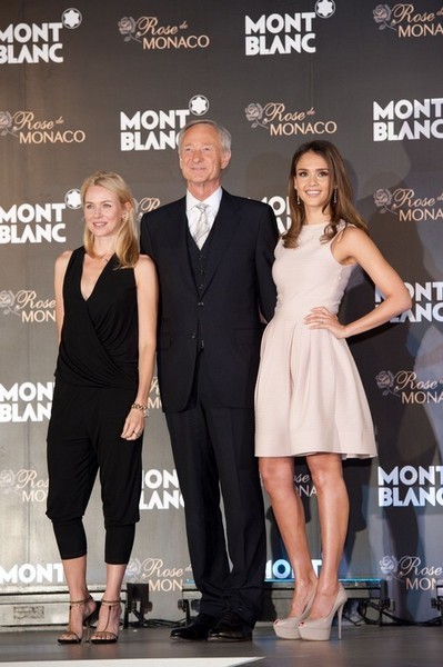 *(左至右)好萊塢巨星娜歐蜜華茲、萬寶龍全球總裁Lutz Bethge與好萊塢巨星潔西卡艾芭