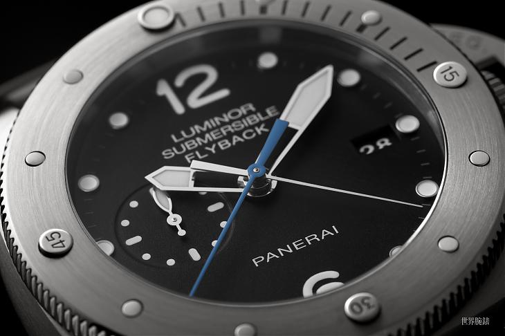 ▲PAM00614 – LUMINOR SUBMERSIBLE 1950 47毫米3日動力儲存飛返計時自動專業潛水鈦金屬腕錶