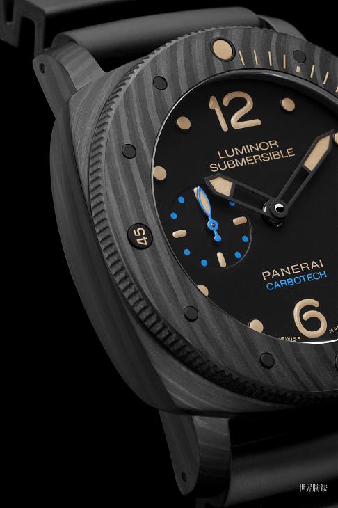 ▲PAM00616 – LUMINOR SUBMERSIBLE 1950 47毫米3日動力儲存自動專業潛水碳纖維腕錶
