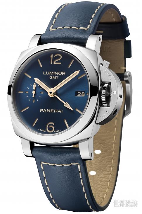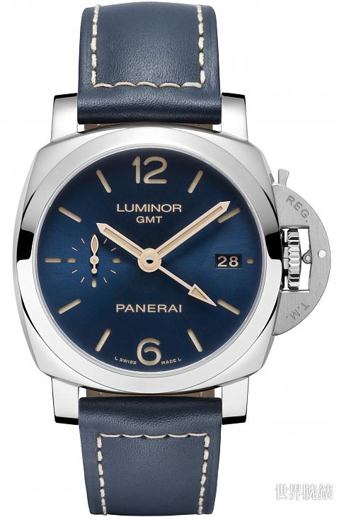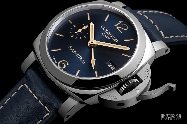 全新Luminor 1950 10 days GMT Automatic 10日動力儲存兩地時間自動腕錶,糅合藍色錶盤的優雅運動外形和緞面太陽放射飾紋(satiné soleil) ,搭載卓越科技的P.2003自動上鏈機械機芯,提供至少十日的動力儲存,配備日期顯示、晝夜顯示的兩地時間功能、重設秒針及快速調時裝置。尖端製錶科技完美地盡收於沛納海的精湛設計中。