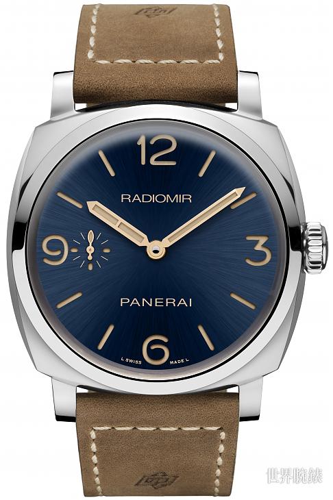Radiomir 1940 3 Days 3日動力儲存腕錶是沛納海諾沙泰爾製錶廠的全新傑作,由沛納海全球專賣店獨家發售。Radiomir 1940 極致純粹的設計典範被一片藍色包圍,猶如波光瀲灩。