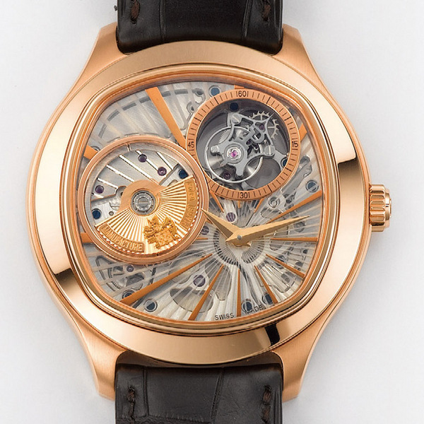 ▲18K玫瑰金材質/1270P自動上鍊機芯/時、分、小秒顯示/動力儲存顯示/陀飛輪裝置/鱷魚皮錶帶、摺疊扣/藍寶石水晶鏡面、螺絲固定式部份透明底蓋/防水30米/參考價:NT$ 6,531,000/查詢電話:(02)8101-8399