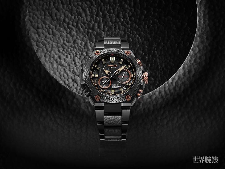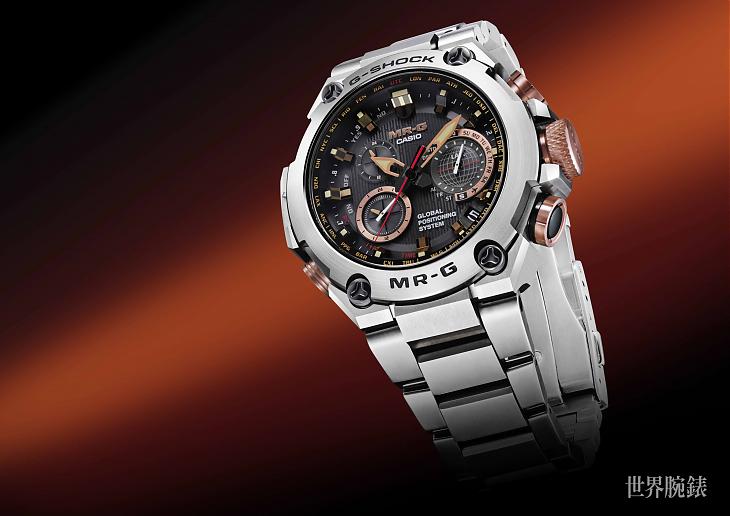 同時,新加入的MRG-G1000DC系列,在時刻、指針、錶眼、錶冠與功能鈕也首度採用頂級日本金屬工藝材質-赤銅IP處理,錶殼零件霧面與亮面拋光相間、有稜有角、倒角處理細膩。錶帶接合螺絲與功能按鈕更以DLC(類鑽碳鍍層)加工,讓外層零件與經常使用的按鈕增加抗磨性。錶圈部份有「Ti64鈦」,提升鈦金屬外層的硬度,讓錶殼與錶帶不易刮傷。