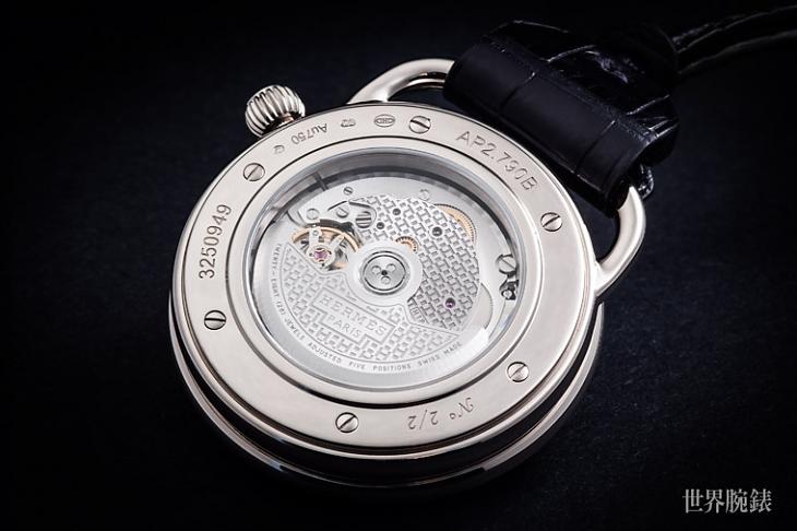 懷錶背後全透明藍寶石水晶底蓋可以看見愛馬仕全手工組裝和修飾打磨的自製H1837自動上鍊機芯,這是愛馬仕於2012年推出的首枚自製機芯,從此晉升高級製錶領域。H1837自動上鍊機芯以輕薄著名,其直徑為25.6mm,厚度3.7mm,具有雙發條盒結構與50小時的動力儲存,無論收藏還是日常配戴都OK!雖然愛馬仕製錶歷史並不算長,整體機芯特別講究採用「H」字樣的刻痕處理,塑造出愛馬仕機芯的特有風格,優雅細緻散發著濃濃的法國味。