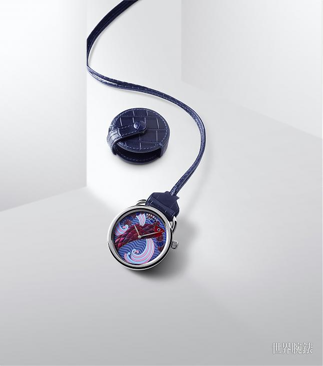 ▲愛馬仕懷錶捨去傳統鍊帶的配置,改為品牌自製藍色鱷魚皮帶與保護套,整體質感再度加分,實踐罕見工藝與皮革工藝的和諧共處。