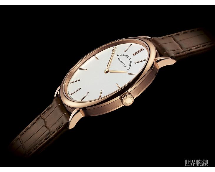SAXONIA THIN 搭配全新設計的錶盤和錶殼,兼且匯聚朗格腕錶各項精髓,但仍然能躋身成為朗格迄今最纖薄的腕錶。SAXONIA THIN 在 2011年問世,以線條流暢,造型洗練見稱。與上一代錶款相比,新錶款除錶盤細節經調整外,實心18K金棒形小時刻度略為增長,且更貼近錶圈,銀白色錶盤以實心銀鑄製並 經重新潤飾,整體設計簡潔優雅,感覺令人舒服。L093.1型手動上鏈機芯僅厚2.9 毫米,精細而奧妙。 錶殼直徑為40毫米的SAXONIA THIN,雖然厚度只有 5.9 毫米,但同樣具備每枚朗格腕錶的經典設計元素,如經拋光和裝飾的德國銀製 3/4 夾板和手工雕刻擺輪夾板。最新 SAXONIA THIN 的錶殼直徑為 40 毫米,厚度僅 5.9 毫米,備有18K玫瑰金及18K白色黃金款式以供選擇。