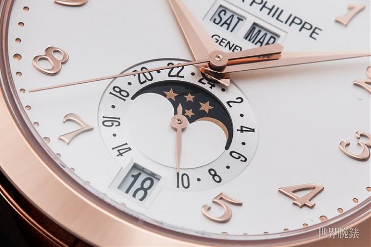 ▲先前Ref. 5396常搭配幾何造型時標,而2016年版則換上過往較少使用的寶璣字時標,其以玫瑰金質製作,經細膩修飾後再鑲於面盤。