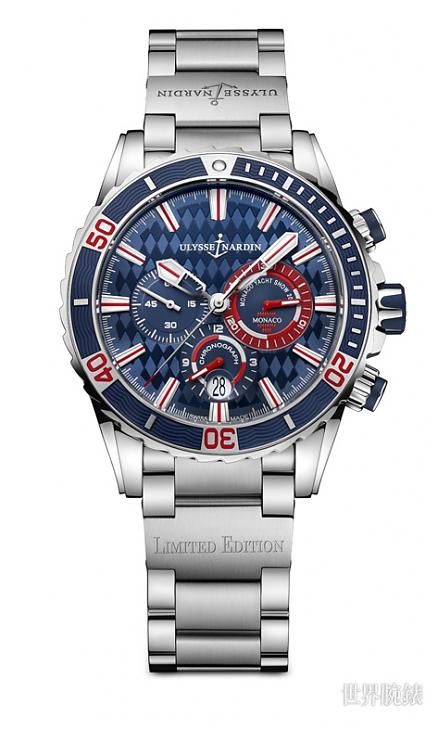- 錶盤 鑽石圖案藍色錶盤,摩納哥國旗顏色指針和時標;