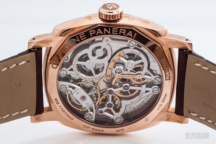 此外,它所搭載的品牌自製P.3001/10手動上鍊機芯,將原本全素面的機芯夾板進行鏤空雕刻,無論是雙發條盒、3日動力儲存顯示或橫跨式錶橋擒縱結構等所有細節都精雕細琢,如此絕美的機芯,藉由透明錶背一覽無遺。「當你用放大鏡仔細看會發現,歐洲頂級製錶工藝就像在打造藝術品一樣,每個元件作動的美,交織出如此精緻的機芯,這種無與倫比的美令人驚嘆。」也證明沛納海無論在粗獷的大錶風格,或是細膩到很微小的做工,都能遊刃有餘,在在展現品牌高超製錶技藝。