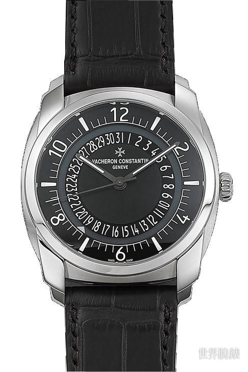 大三針加日期的功能組合是Quai de L'ile系列在2008年初出時就具備的款式,不過之前搭載的一直都是2460機芯,然而這次卻在功能完全相同、面盤配置也無甚變化的狀況下換裝了新式機芯,這樣的安排不禁讓人推測5100乃是針對入門產品而來.不過5100機芯本身的性能取向上還有許多值得討論的地方,5100機芯具備雙發條盒,動力儲存有60小時,基礎性能較2460更為優秀。原本在搭載在Overseas時機芯採用的是22K金的自動盤,樣式也是羅盤造型,這裡則換成了Quai de L'ile標準造型的鎢質盤身。