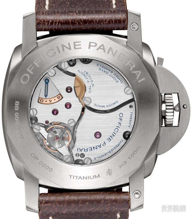 PAM00368的錶殼以磨砂鈦金屬製成,「很多人在看到這只錶時都覺得它應該頗有份量,實際戴上後又會覺得它出乎意料的輕。」沛納海選擇質輕、堅硬的鈦,具有可塑性高、抗蝕性、可焊性等特質,為高級製錶界中價值最高的金屬。此外,鈦金屬也有抗敏性,容易癢或敏感性肌膚戴上後也不會覺得有不適感,加上它很輕,配戴時間再長也不會覺得有負擔。