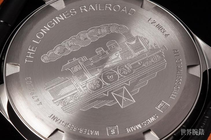 2016年復刻系列鐵路腕錶的背面我們可以再度看見延續鐵路腕錶的傳統細節,實體底蓋鐫刻精緻的火車圖案,此靈感源自遵循浪琴1920年代為鐵路公司所設計的懷錶裝飾,細緻的鐵路刻印具有非常重要的歷史意義。此次復刻系列鐵路腕錶搭載了浪琴獨家的高精準度自動上鍊機芯L888.2,64小時動力儲存搭配30米的防水深度,足以應付日常配戴的便利。