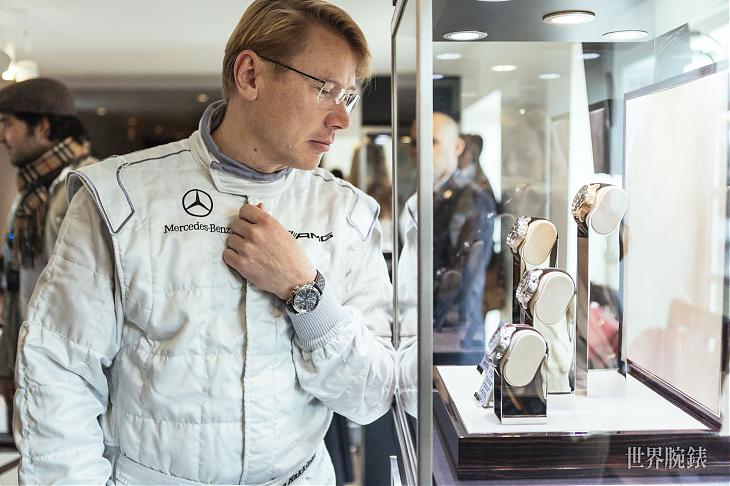 ▲F1一級方程式世界冠軍米卡 · 海基寧(Mika Häkkinen)也佩戴「魯道夫· 加拉斯奧納」特別版出席活動