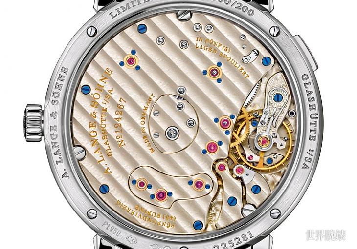 鉑金材質/L095.4手動上鍊機芯/時、分、小秒、大日期顯示/動力儲存顯示/月相顯示/藍寶石水晶鏡面、透明底蓋/錶徑41mm/限量200只/參考價:EUR 69,600