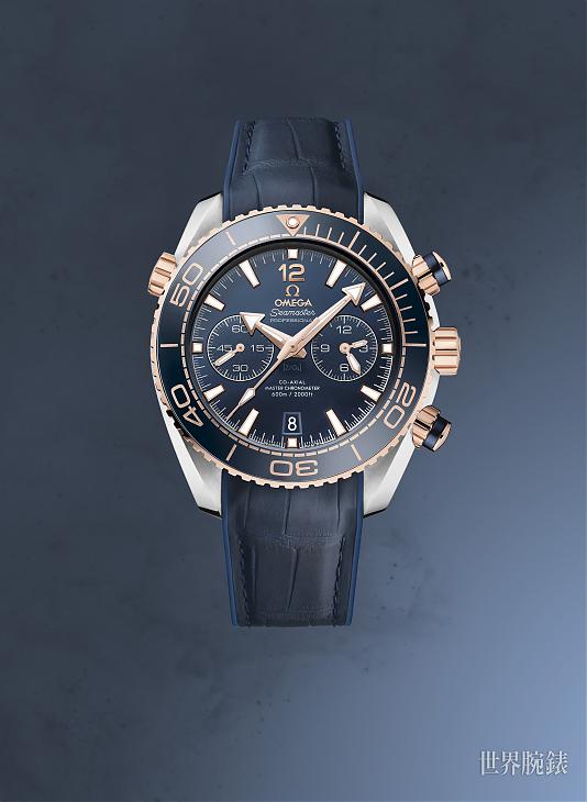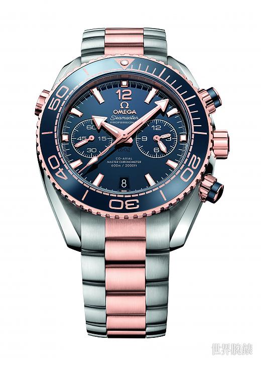 ▲OMEGA海馬Planet Ocean 600米系列45.5毫米大師天文台計時腕錶 ,雙色錶鏈款,售價約NT$ 512,300