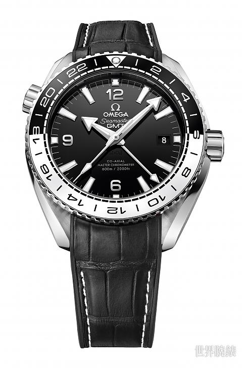 ▲OMEGA海馬Planet Ocean 600米系列43.5毫米GMT腕錶,黑色皮錶帶,售價約NT$ 247,300