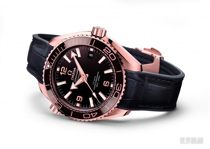▲OMEGA海馬Planet Ocean 600米系列39.5毫米女仕腕錶,棕金款,售價約NT$ 660,700