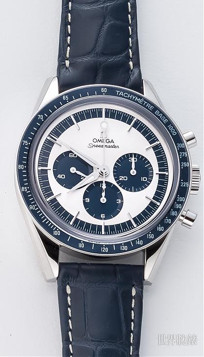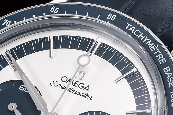 比較2016年這版和2012年的版本,新版有幾個明顯比較討喜的地方,首先它的配色採用了雙色面盤,三個子面盤和外圈刻度都採用了跟銀白色主面盤對比的藍色,搶眼之餘也更復古;這樣的配色比較接近賽車錶的風格,事實上超霸在以登月聞名之前原始的定位就是車賽用錶,這次的復刻也算是回歸初衷,而OMEGA這次在官方的宣傳中也不再特別強調它的太空淵源了,畢竟CK2998是從1959年開始販售的,當時OMEGA跟太空也還無甚淵源。