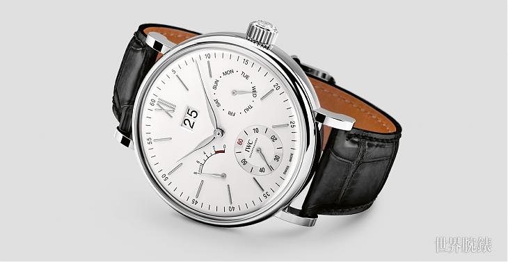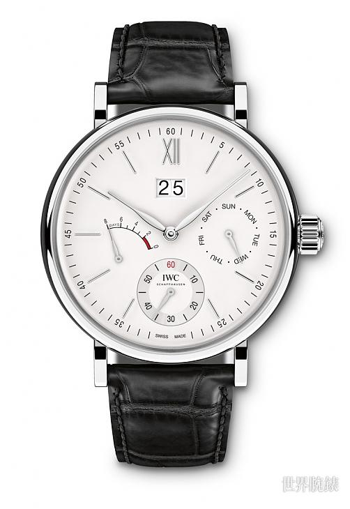 Portofino的這款大日期星期是在2015年的WW香港錶展上發表的。Portofino在此之前就已經用59系機芯做過類似的日期顯示款了(那還是59機芯的處女秀),跟這款相比小秒盤和動力儲存顯示都原封不動,唯有日期是以單盤式的小窗做在3點鐘,到了這款將日期改為雙盤大日期並且搬到12點鐘,原本的三點鐘位置則換成指針式星期,雖然實質上的修改不小,機能性也存在著有感的落差,不過兩者在視覺上的印象還是相當近似。