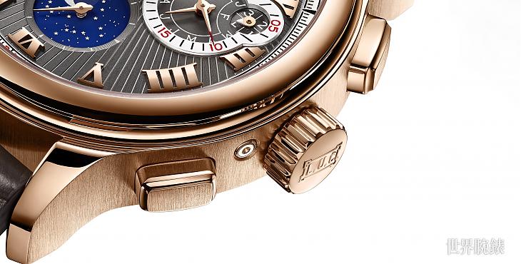 「公平採礦」認證18K玫瑰金材質/03.10-L手動上鍊機芯/時、分、秒、日期、月份、平年及閏年顯示/月相顯示/飛返計時碼錶功能/日內瓦印記/藍寶石水晶鏡面、透明底蓋/防水30米/錶徑45mm/限量20只/參考價:NT$3,124,000