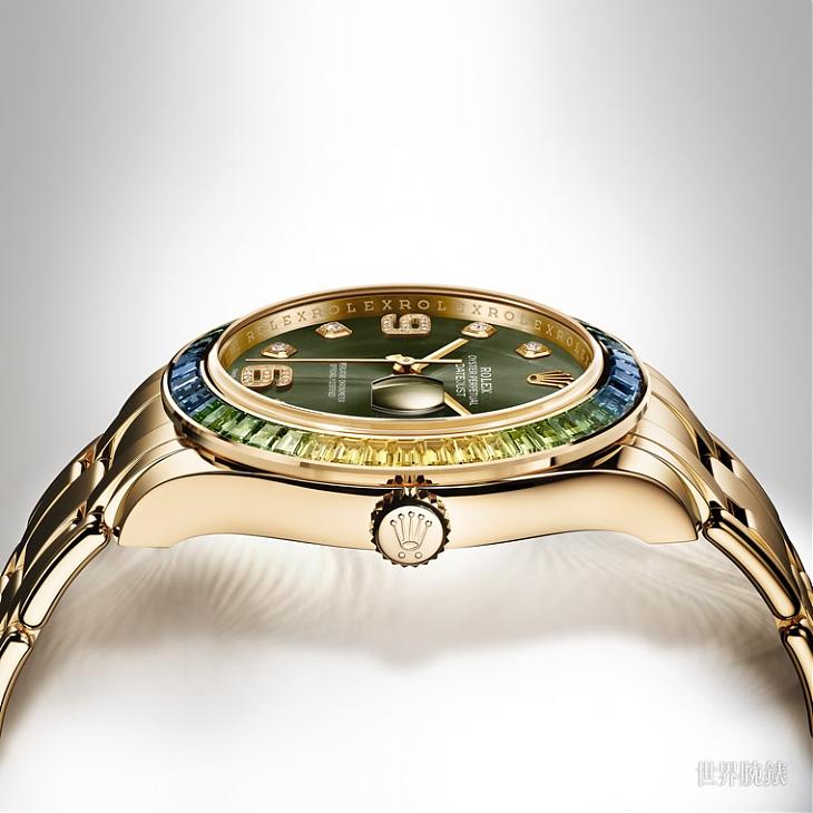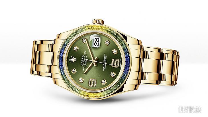 ▲全新的Pearlmaster 39的漸層式彩色珠寶外圈,搭配18ct黃金錶殼,實在華麗再加乘。