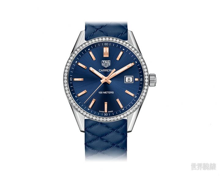 ▲整體為藍色的這只卡萊拉女錶,面盤上鎸刻TAG Heuer與Carrera字樣。整體散發著濃烈知性風,外型大氣。
