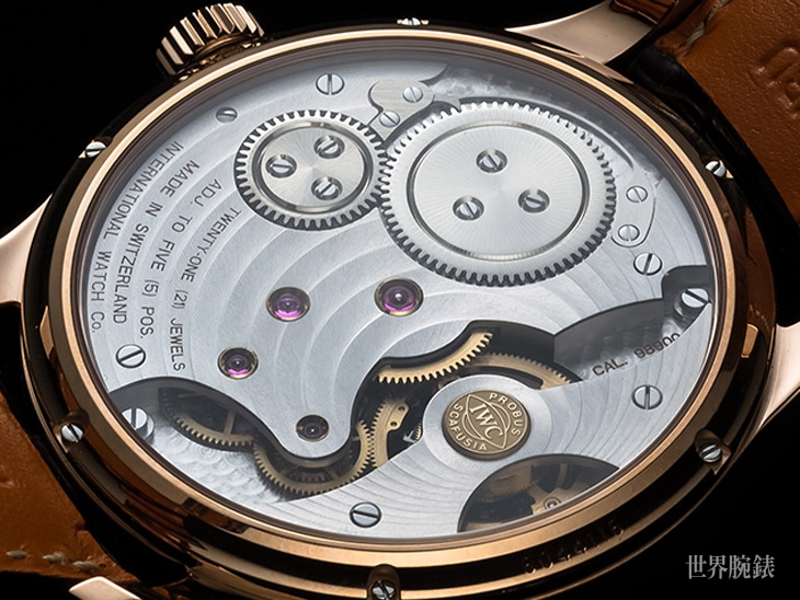 手錶搭載的98900機芯背後有一段豐厚的歷史底蘊,該機芯最初是在1930年代為獵人式懷錶而設計,自面世以來不斷改良。98900與其他同系列機芯最大差異在於擺輪橋板,採雙頭鎖固,非常堅固。為了確保優異的走時精確性,IWC製錶師將平衡擺輪的振頻提高到每小時28800次。