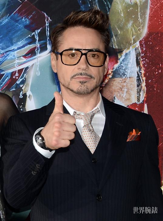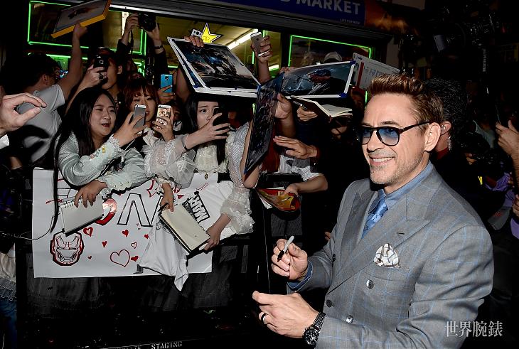 ▲在Marvel電影《美國隊長:英雄內戰》(Marvel’s Captain America: Civil War)的巴黎首映上,小勞勃道尼戴的則是Geophysic Universal Time世界時區不鏽鋼腕錶。