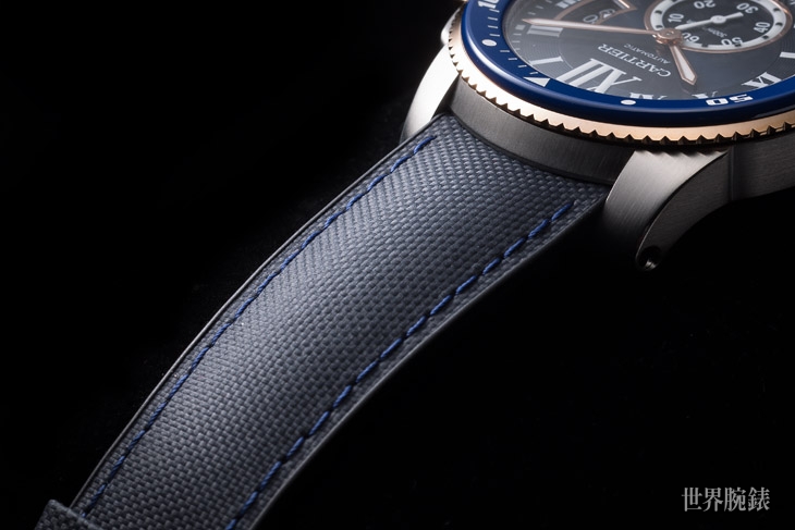 ▲ 藍色錶帶也與面盤、錶圈相呼應,而且還首次換上牛皮與橡膠混合的防水錶帶,提升了視覺美感和佩戴的舒適性。
