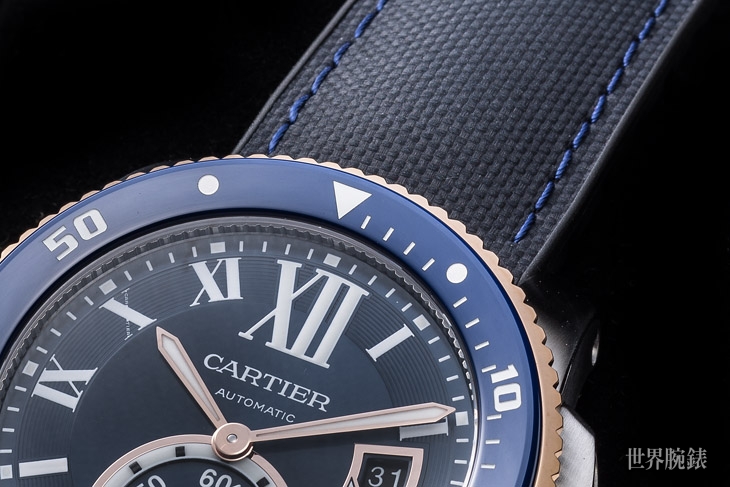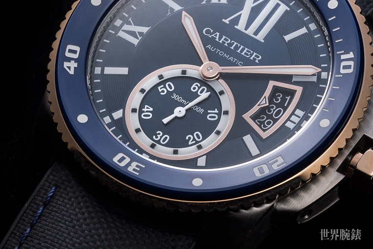 羅馬時標是卡地亞手錶的經典設計元素之一。具備羅馬時標的錶款往往都會散發出優雅的氣息,但Diver錶款依然能創造出潛水錶該有的運動風格,也正是品牌將兩者特質結合得如此融洽自然,造就了它的獨特之處。加上6點鐘方位的小秒盤飾以阿拉伯數字時標用作區別讀時,使得整個面盤能完美呈現。