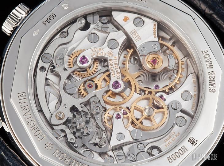 錶殼採用鉑金材質,搭配海軍藍的錶帶,整體色調完全就是PT950系列的風格;近年VC似乎已經不再執著於PT950這個系列了,錶鏡上隱形的PT950 Logo也愈來愈難得一見,不過以這款來說,雖然名目上並未點明,不過配色本身的的確確就是PT950,或許這也算是他們延續此一系列的一種形式吧。
