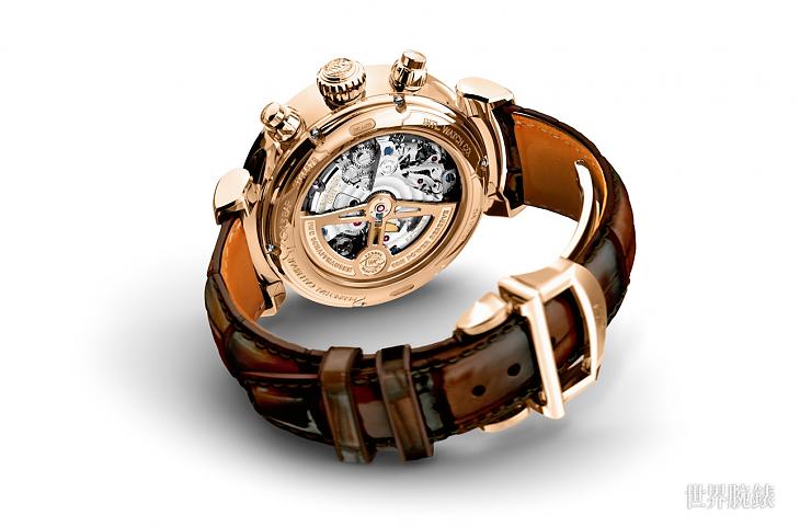 此次,IWC將計時碼錶與永久月相盈虧融於小錶盤中。其月相盈虧顯示盤的部分為鍍銀或鍍金色澤,部分則為深藍色,隨著顯示的旋轉在錶盤鏤空下展現地球陰影或月相盈虧。與此同時,IWC的製錶大師也為這款錶打造了 89630機芯,搭載萬年曆的其他功能顯示,諸如日期、月份、星期和四位數年份。
