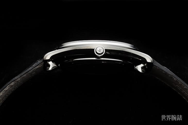 ▲超薄萬年曆的尺寸不到9.2mm,錶耳經過積家的弧度處理,不僅更緊貼手腕,在佩戴上的舒適性來說,也是大大的加分許多;而錶冠另外一頭則是加上積家的隱藏式快調按把,所以錶殼線條可說是相當複雜。