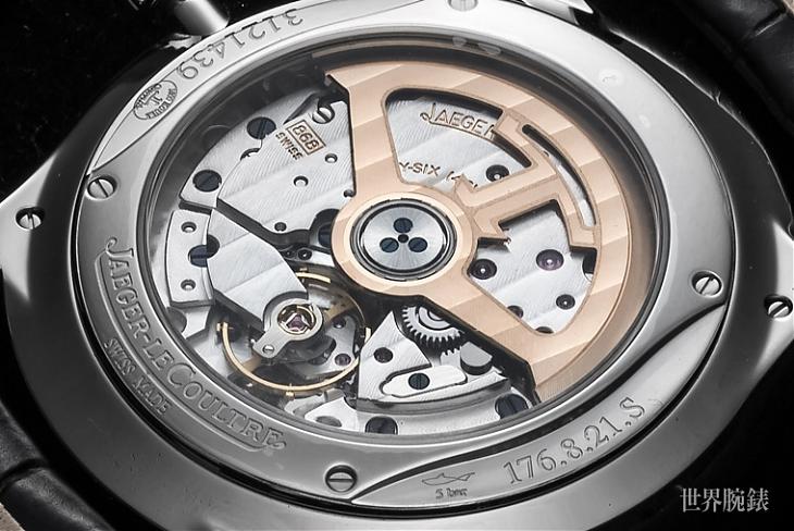 868超薄萬年曆機芯擁有336枚零件,46顆紅寶石軸承,動力儲存為38小時,震頻28,800vph,整體厚度為4.72mm,因此造就了這款超薄萬年曆不到9.2mm的輕薄,翻至錶背欣賞一下,可以看見22K金積家Logo的鏤空自動盤自由擺動,由於超薄的機芯尺寸,因此也應用於積家其他的產品線裡,是一款相當實用且可靠的機芯。