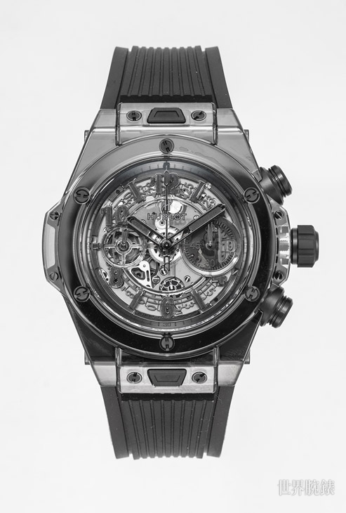 ▲ Big Bang Uncio藍寶石黒水晶錶實現宇舶雙重壯舉,結合藍寶石水晶錶殼的複雜切面和All Black的特殊風格。