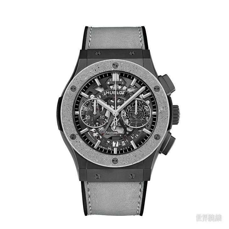宇舶這只Classical Fusion都市叢林計時錶,是宇舶首次用混凝土元素創造的計時錶。這只錶搭載HUB1155自動上鏈機芯,動力儲存42小時。它的錶圈由混凝土與複合樹脂打造而成,並且搭配精密噴砂鍍銠處理嵌入式面盤,面盤上三點鐘方向印有 NYC logo,六點鐘方向則有著鏤空日期視窗。這只計時錶除了完美詮釋宇舶”堅持第一、獨一無二、與眾不同”的設計理念,也是在向紐約市致敬。雖然這只錶款是於邁阿密首次展出,但是品牌也希望能藉由這只錶讓更多民眾得到創新啟發。