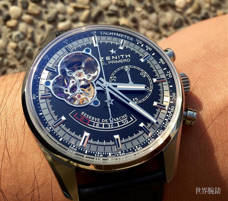 這款腕錶搭載El Primero 4021型自動上鍊機芯,可說是El Primero的進化版,將36,000轉的高振頻視覺化,穩定度與精確度同樣在水準之上。「這只錶我上過測秒機,平均一天只慢了兩秒左右。」ZENITH於50年前設計的El Primero機芯,光看其功能與特色,即便是現在看來依舊毫不遜色。