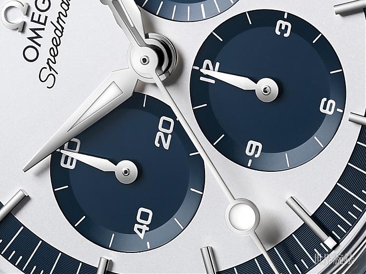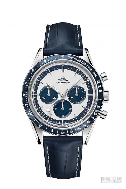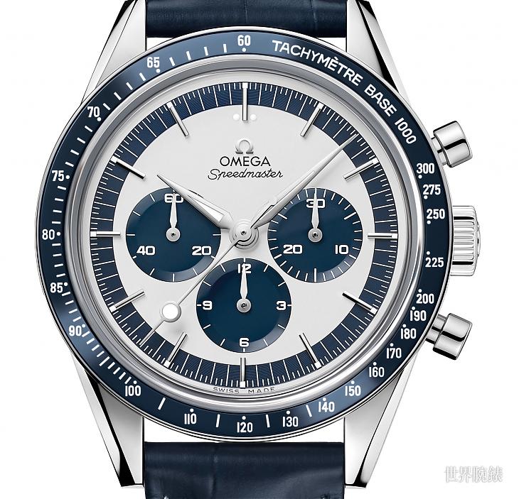 歐米茄同時還有推出兩眼款的超霸登月錶,並採用Cal. 9300自動上鍊機芯,是登月錶的衍生近代款。鍾愛古董並追隨超霸登月錶的粉絲應該會比較哈完美復刻第一代超霸登月錶的三眼款式,而且換上醒目的藍白雙色外型,實在叫人難以抗拒。