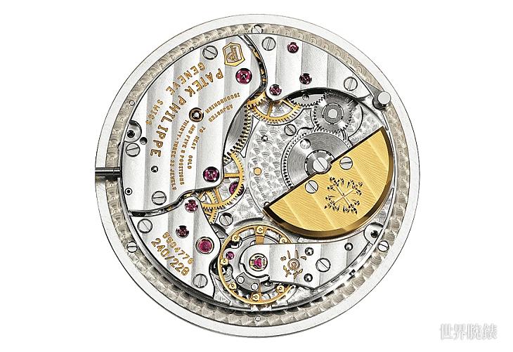 Ref. 5230R世界時間搭載百達翡麗自製240 HU自動上鍊機芯,確保了腕錶走時的精確度與世界時間功能的便捷操作。這枚超薄的機芯可說是驚艷錶壇之作。它精緻的時區及自動上鍊裝置的厚度僅為 3.88 毫米,這樣纖細、優雅的特色絕對是世界時間錶款的理想機芯之選。此外,百達翡麗也完成了讓24個世界時區一目了然的成就。首先,本地時間的顯示最為清晰,當指定城市名稱位於 12 時位置的小紅箭頭上方,時針和分針會以傳統的形式呈現時間。在其他 23 個時區中,佩戴者可以在 24 小時刻度環上直接讀取時間,該刻度環在城市圓盤內側逆時針轉動。分針指示的時間在各個時區都相同。當抵達不同的時區時,佩戴者只需連續按動位於錶殼 10 時位置的按鈕,使相應城市名稱與 12 時位置紅色箭頭對齊。每次按動該按鈕,時針就會前進 1 小時,同時城市圓盤和 24 小時刻度環將逆時針旋轉 1 小時。在此過程中,時區裝置與機芯分離,從而保證分針準確運行,且擺輪振幅不受影響。所有 24 個時區的時間均精確顯示,精度達到百達翡麗印記的嚴苛要求。