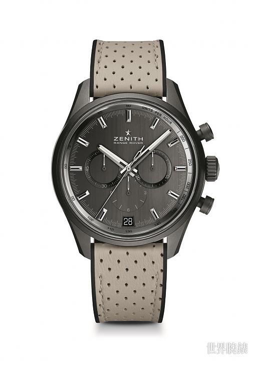 標誌性的外型、非凡的魅力、精細的工藝與出眾的性能:經典的El Primero 與Range Rover不只是在同一年(1969年)誕生,兩者也擁有相同的重要特質,諸如標誌性的外型、非凡的魅力、精細的工藝與出眾的性能。這只El Primero Range Rover特別版,它的灰色拉絲錶面刻印有"Zenith Range Rover"字樣,向第一輛豪華SUV致敬。指針與時標經鍍釕並帶有夜光塗層。El Primero Range Rover計時錶隨著傳奇計時機芯的飛快旋律起舞,錶身展現流線般的優美弧度與絕無僅有的設計。