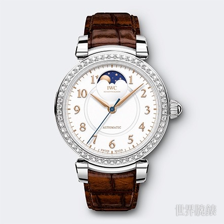 ▲IWC全新達文西月相錶,鑲鑽錶圈搭配簡潔錶盤,典雅氣質自然流露。