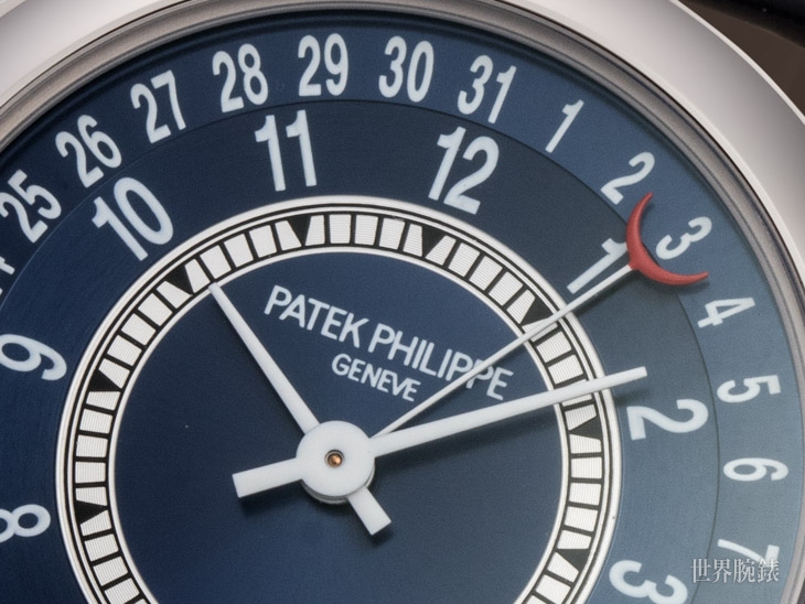 ▲ 月牙狀日期指針,亦是面盤上的特色之一。